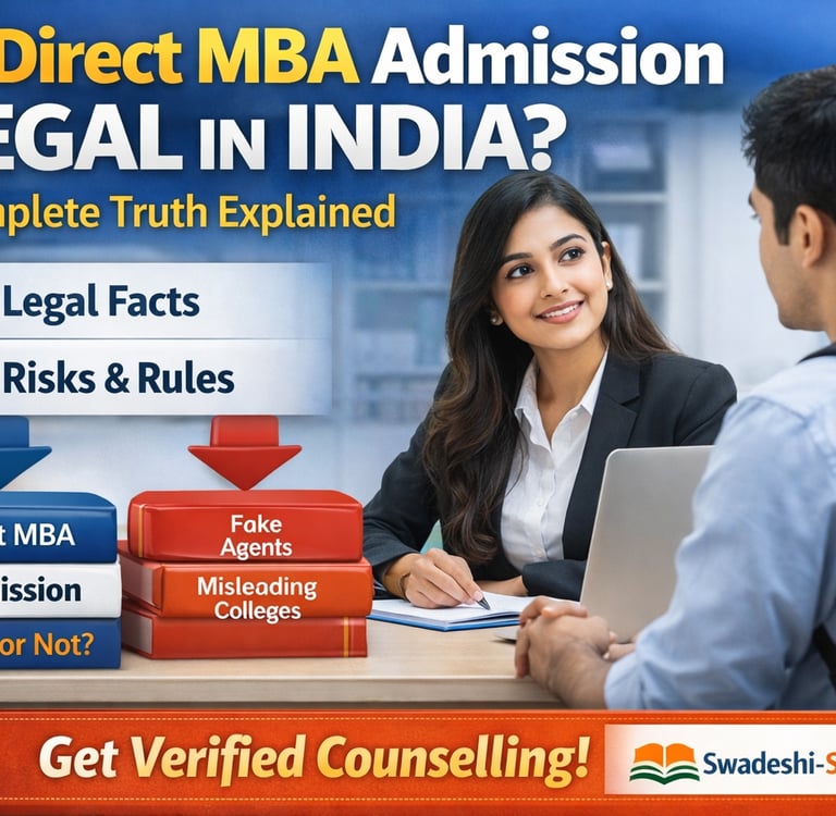 Is direct MBA admission legal in India? Know the complete truth about management quota, AICTE rules, fees, risks, and safe admission guidance.
